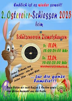 Aufgrund der guten Resonanz im Vorjahr veranstaltet der Schützenverein Ziemetshausen am zweiten Aprilwochenende in seinem Vereinsheim in der Taferne zum zweiten Mal ein Ostereierschießen.