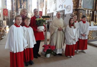 von links: Marianne Eisele, Ricarda Seethaler, Pfr. Bernhard Endres mit den Ministranten