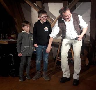 "Endlich mal wieder was zum Lachen", freuten sich die ältesten Teilnehmerinnen über das Allgäuer Mundart-Kabarett mit Broadway-Joe (Josef Haberstock aus Mittelberg). Sie und viele weitere Gäste aus nah und fern waren der Einladung des Sport- und Kulturausschusses, namentlich Gemeinderätin und Hauptorganisatorin Edith Fendt, der Marktgemeinde Ziemetshausen gefolgt. Sowohl alte Fans wie auch neue Fans folgten gebannt dem Feuerwerk aus Lautmalerei, Wortwitz und Sprachsaltos von Broadway-Joe. Mit feiner Sprachironie und hintersinnigem Humor sprach das Multitalent viele Teilnehmer persönlich an und nahm sowohl Frauen als auch Männer wie Jugendliche "auf's Korn". Schlagfertig begrüßte er u.a. Zweiten Bürgermeister Edwin Räh-äh-äh-der als Redner mit vielen Ähs. Mit Akkordeon, Gitarre und Mundharmonika gestaltete Broadway-Joe ein fulminantes Mundart-Theater, das von Thorsten Engel abgemischt wurde. Die Gäste durften sich Lieder wünschen, mussten aber im Gegenzug den Refrain mitsingen und -klatschen. Über die Tücken des Alltags wie Zehennägelschneiden, achtloses Verspeisen von Käse, Stammtisch oder Haarefärben, auch viel Selbst-Erlebtes, durfte herzlich gelacht werden. Ein besonderes Schmankerl war der Arabisch-Kurs für Schwaben. Ein echter Scheich stellte das "klemm-fidlige" Hochdeutsch einem gepflegten Arabisch-Oberbaierisch-Schwäbisch gegenüber. Niemand hätte geahnt, dass es dermaßen viele Ähnlichkeiten zwischen Schwäbisch und Arabisch gibt. Neben der Pflege der deutschen Sprache und der Mundart liegen dem Kabarettisten die Kinder am Herzen. Die Buben Can und Matteo Nagl durften das beliebte "Schokodil"-Lied mitsingen. Darin wird aufgeklärt, wer für das nächtliche Verschwinden von Schokolade verantwortlich zu machen ist, nämlich das "Schokodil". "Ich hab natürlich auch eine Philosohpie", sagte Broadway-Joe hintersinnig. "Wenn wir wieder zusammensitzen - und das gilt auch für in 200 Jahren - dürfen mir gesellige, lustige Lieder singen. Und unsere Mundart muss erhalten bleiben. Im Dialekt spricht man den Menschen direkter an. Da geht das Herz auf. So gelingt Zusammenleben." Unter www.broadway-joe.de kann der Kabarettist für Kindergärten oder Vereine und Firmen gebucht werden.