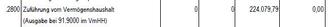 Die Zuführung vom Vermögenshaushalt zum Verwaltungshaushalt belief sich auf 224.079,79 Euro.
