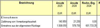 Dies setzte sich im Vermögenshaushalt fort, so dass der allgemeinen Rücklage zum Jahresende mehr als der Planansatz entnommen werden musste.
