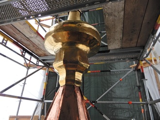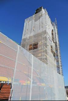 Anhand einer Bilderpräsentation von Kirchenpfleger Peter Greiner wird den Besuchern ein Einblick über den Verlauf der Baumaßnahme „Kirchturm- und Dachstuhl- Renovierung der Pfarrkirche“ gegeben.