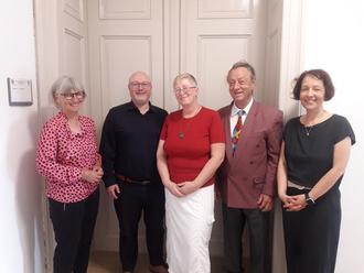 Ziemetshausen. Seit 60 Jahren gibt es die Vhs Krumbach mit ihren Außenstellen, davon war Josef Kuhn 34 Jahre lang der Leiter der Außenstelle Ziemetshausen. Seine bewegende und bewegte Lebensgeschichte umfasst die Amtszeit von fünf Bürgermeistern. Eine Fülle von unterschiedlichsten Veranstaltungen u.a. zu pädagogischen Themen, Natur, Gesundheit und Kultur standen auf dem Programm. Gerade im letztgenannten Bereich gab es besondere Highlights, Großveranstaltungen mit Vereinen aus Ziemetshausen und Ortsteilen wie „Give peace a change“, zum Krieg in Jugoslawien, zu Alba Julia für Schwester Maria im Saal von Ursberg waren Glanzpunkte. "Meine Frau Charlotte hat mich all die Jahre begleitet und mitgewirkt. Dadurch hatten wir ein ansprechendes und ausgewogenes Programm," führte Kuhn aus. Aber nun ist die Zeit gekommen, diese wichtige Aufgabe in der Kommune, nämlich die Bildung und Sensibilisierung der Bevölkerung für gewichtige Entwicklungen mittels Sachvorträgen, zu übergeben. Gerade die Corona-Pandemie hat gezeigt, wie schnell ein selbstverständliches Miteinander am Ort zerbricht. Es wird noch einige Zeit dauern, bis das alte Niveau erreicht ist. „Ich freue mich über meine Nachfolgerin Sylvia Stockinger." Diese wohnt zwar erst ein Jahr in Ziemetshausen, ist aber bereits als Vhs-Dozentin tätig und hofft auf gute Zusammenarbeit mit den Vereinen vor Ort.“ „Ich bin offen für Abenteuer. Alles ist im Aufbruch. Ich freue mich auf die Aufgabe", entgegnete Frau Stockinger. Vhs-Vorsitzende Johanna Herold, Grundschulrektorin Alexandra Hahn sowie Erster Bürgermeister Ralf Wetzel beabsichtigen Sylvia Stockinger nach Kräften zu unterstützen. "Die Vhs am Ort begleitet Menschen in ihren unterschiedlichen Bedürfnissen. Es wird weiterhin Vorträge für Eltern, Kreativkurse für Kinder, eben Bildung für alle geben", führt Herold aus. "Und damit Sie als neue Vhs-Außenstellenleiterin auch immer gut 'beschirmt' sind, überreiche ich Ihnen einen Regenschirm, als 'Schutz und Schirm' vor allen Stürmen, die auch kommen werden", führte Herold aus. Auch wenn sich Rektorin Alexandra Hahn und Erster Bürgermeister Ralf Wetzel die Kritik am Umbau des schönsten Vhs-Raumes in eine Küche gefallen lassen mussten, stehen sie doch hinter "ihrer Vhs": "Wir sind stolz auf die Leistung von Josef Kuhn, der viel bewegt hat, und freuen uns auf eine gute Zusammenarbeit für die Menschen am Ort." Oder wie es Josef Kuhn ausdrückte, wenn man eine Aufgabe gut machen will : " Du kannst es nicht allen recht machen. Selbst wenn du übers Wasser läufst… kommt sicher einer und fragt, ob du zu blöd zum Schwimmen bist."