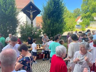 Am 29. Juni hat die Pfarrei Ziemetshausen ihr Patrozinium, den Namenstag ihrer Kirchenpatrone St. Peter und Paul, gefeiert. Der Schlüssel ist das Symbol des Hl. Petrus -daher haben Frauen vom Pfarrgemeinderat Schlüssel aus Mürbteig gebacken. Diese wurden von H. Pfr. Endres gesegnet und am Ende der Messe von den Ministranten an die Gottesdienstbesucher verteilt. Im Anschluss an die Festmesse lud die Pfarrei zu einem Stehempfang mit verschiedenen Getränken am Kirchplatz ein. Die Dorfmusik erfreute die zahlreichen Besucher mit ihren musikalischen Darbietungen. So fand bei strahlendem Sonnenschein eine Begegnung mit anregenden Gesprächen statt. Und alle waren sich einig, dass dies im kommenden Jahr wiederholt werden soll. Herzlichen Dank an alle Besucher und alle, die zum Gelingen des Festes beigetragen haben.