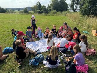 Auf der Suche nach dem sehr seltenen Wiesenknopf-Ameisenbläuling im Zusamtal trafen sich die Klassen 2a und 2b der Hyazinth-Wäckerle-Grundschule mit der Gebietsbetreuerin Eva Liebig vom Naturparkverein. Die Kinder – manche waren fast schon Schmetterlings-Profis – forschten auf der Wiese, dem Zusamuferstreifen und fanden tatsächlich den Wiesenknopf, den der Schmetterling zur Fortpflanzung benötigt. Hier legt er nämlich seine Eier ab, die sich zu Raupen entwickeln. Diese lassen sich zu Boden fallen, bevor sie sich dank ihres „Ameisenparfüms“ in das Nest befördern lassen. Hier verbringen sie den Winter und werden von den Ameisen gehegt und gepflegt – alles dank ihres Ameisenparfüms. Im nächsten Jahr muss es nach der Verpuppung schnell gehen, wenn sie als entwickelter Falter ins Freie wollen. „Krass“, „cool“ und „echt jetzt“ waren die Kommentare der Schülerinnen und Schüler. Nach einer Wiesenbrotzeit mit selbst hergestellter Blütenbutter gings zurück in die Schule.