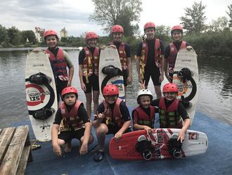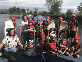 Bei schönem Wetter begrüßten Sandra Vihl und Edith Fendt am 7. August 21 Kinder bzw. Jugendliche am Turncable in Thannhausen. Seit vielen Jahren werden die beliebten Wakeboard-Kurse im Rahmen der Kinderkulturtage vom CSU-Ortsverband angeboten. Nachdem alle mit Neoprenanzug, Helm, Schwimmweste und Board ausgestattet und auf dem Weg zum Übungslift waren, sah man doch einigen die Aufregung und Nervosität vor diesem Event an. Doch schnell verdrängte der Spaß die Aufregung und es war wieder einmal erstaunlich und schön anzusehen, wie schnell die Kinder es schafften die Balance auf dem Board zu halten und über das Wasser zu gleiten.