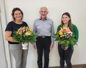 Stellvertretender Gemeinschaftsvorsitzender Alois Kling gratuliert den beiden Mitarbeiterinnen, dankt ihnen für die bisherige Zusammenarbeit und wünscht Ihnen weiterhin alles Gute bei der Verwaltungsgemeinschaft Ziemetshausen.