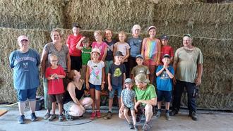 Wiesenforschungen mit Insektennetz und Becherlupe, leckere Butter aus Samen von Springkraut und Brennnesseln probieren, Schafe streicheln und scheren, Hühner und Pferde streicheln und Leckeres vom Grill….. der Ferientag am Hof der Schäferei Schauer war ein rundum vielfältiger und toller Tag. Elias war schon ein bisschen früher da und half Schäfer Schauer beim Füttern der Tiere. Danach ging es mit weiterer Unterstützung von Heidi Geier an die Zusam-Wiesen zur Wiesenforschung. Mit dem Insektennetz wurden fliegende Insekten von Johannes, Leon und Valentin gekeschert. Zahlreiche Grashüpfer und Ameisen wurden gefangen, Jakob hat sogar einen Marienkäfer gefunden „Am spannendsten war die gefährlich aussehende Wespenspinne“, meinten Marie und Felicitas. Und – „die leckere Blütenbutter machen wir zu Hause auch mal“, waren sich Kiara, Marie, Leonhard und Julia einig. Familie Schauer hatte der Hitze wegen nach dem Grillen eine Überraschung parat: für jedes Kind gab es ein leckeres Wassereis, hervorragend zur Abkühlung. Das Spannendste kam nach der Mittagspause: Manuel Schauer zeigte den Kindern, wie Schafe geschert wurden.