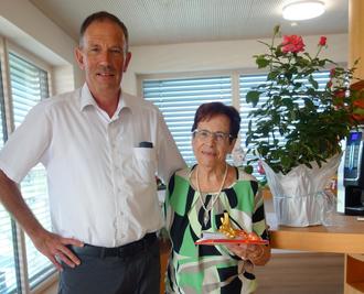Anlässlich des 90. Geburtstages von Frau Maria Aumann am Feiertag Mariä Himmelfahrt gratulierte Edwin Räder der Jubilarin sowohl als Zweiter Bürgermeister der Marktgemeinde als auch CSU-Ortsvorsitzender und überreichte der Jubilarin als kleines Geschenk einen Rosenbaum für ihren Garten. Er wünschte ihr weiterhin beste Gesundheit und bewunderte ihren Elan, den die Senior-Chefin der Aumann-Unternehmensgruppe seit jeher auszeichnet. Verbunden waren die Glückwünsche mit dem Dank für ihre jahrzehntelange CSU-Mitgliedschaft - zusammen mit ihrem leider bereits verstorbenen Ehemann Theo Aumann prägte die Familie Aumann über viele Jahre die örtliche CSU.