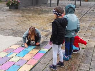 Nach dem erfolgreichen Kreide malen im Ferienprogramm 2024 haben wir die Aktion dieses Jahr wiederholt. Trotz Nieselregen sind einige Kinder gekommen, um den Platz der neuen Mitte zu verschönern. Leider regnete es im Lauf des Vormittags so stark, dass nach 1,5 Stunden abgebrochen werden musste und auch die Kunstwerke nur von kurzer Dauer waren. Die Kinder waren sich aber einig, dass sie sich über eine Wiederholung im nächsten Jahr freuen würden.