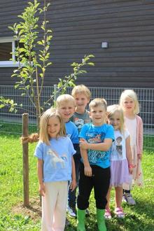 Auch im Garten im Kinderhaus wurde mit Freude ein Obstbaum entdeckt - gepflanzt vom Schützenverein Ziemetshausen.