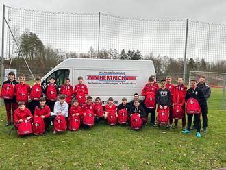 Auf dem Bild: die Spieler der C und B Jugend sowie der Sponsor Harald Hertrich.