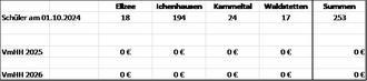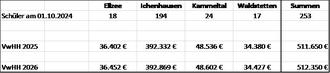 | 2. | Für den Fall der Änderung der Schülerzahlen zum 1. Oktober 2025 wird die Verwaltung angewiesen, geänderte Umlagenbescheide für das Jahr 2026 für den schulischen Bedarf des Verwaltungs- und Vermögenshaushalts zu erlassen. | ||