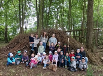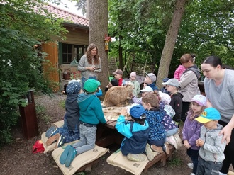 Die Behlinger Kiga-Kids machten sich freudig auf den Weg zur Biberburg welche neben dem Baumhotel Auszeit zu finden ist.