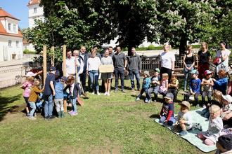Er wünsche sich, dass es, so wie die 120 Bäume auch, weiterhin wachse und gedeihe. Sabine Haug, Leiterin des Kneipp-Kinderhauses schloss sich im Namen aller Kinder und der Erzieherinnen an: „Wir freuen uns über den Baum, der uns viele süße Birnen schenken und mit uns allen mitwachsen wird.“