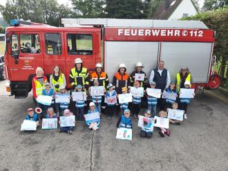 Kinder vom Kiga Ettenbeuren, Bürgermeister Thorsten Wick, Feuerwehr Ettenbeuren, Kiga-Team von Ettenbeuren
