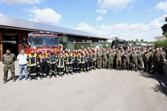 Mit ihrer freundlichen Aufnahme gebe die Gemeinde Kammeltal ihrer Patenkompanie nicht nur die Möglichkeit mit ihrem System in ungewohnter Umgebung zu arbeiten, sie trage gleichzeitig für dessen weitere Entwicklung bei, betonte Kompaniechef Flottillenarzt Lukas Mörsch. Es sei schön, wie die Pflege der Patenschaft verlaufe: „Wir sind immer wieder gerne bei Euch.“ Kammeltals Bürgermeister Thorsten Wick fügte an: Man habe gesehen, wie professionell die Feuerwehr vorgehe. Genauso wichtig sei, gemeinsam mit der Patenkompanie solche Übungen durchzuführen und die Gemeinde fördere und unterstütze das. „Die momentane Situation lässt es nicht zu, dass wir auf unsere Bundeswehr verzichten.“