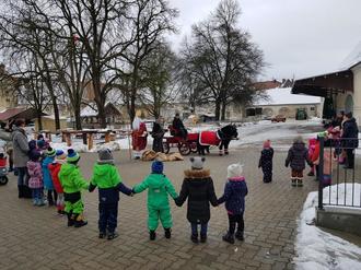 Als der Nikolaus und sein Freund Knecht Ruprecht auf einer tollen Kutsche einfuhr, war das ein großartiges Ereignis für Groß und Klein. Wir begrüßten den Nikolaus mit einem Lied und warteten gespannt, was er alles von uns wusste. Nach einem großen Lob vom hl. Nikolaus bekam jede Gruppe einen Sack voller Leckereien überreicht.
