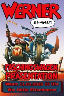 Am Sonntag, den 11. Januar 2026, stellt das Hüttenteam Ettenbeuren seinen neuen Faschingswagen vor – in diesem Jahr unter dem Motto „Werner Beinhart“.