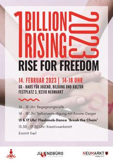In diesem Jahr wird es im G6 - Haus für Jugend, Bildung und Kultur am 14. Februar von 14.00 bis 18.00 Uhr ein Begegnungscafé unter dem Motto „One billion rising – rise for freedom“ geben. Ein Nachmittag für alle, die tanzen, sich begegnen, vernetzen, informieren und somit ein Zeichen gegen Gewalt an Frauen und Mädchen setzen wollen. „Es geht nicht allein um den Tanz. Die Verbundenheit, die wir mit allen Frauen und Mädchen auf der Welt spüren, sich die Hand reichen um etwas zu bewegen. Dieses Gefühl ist magisch“ so Initiatorin Barbara Röll. „Jeder der dabei war und dabei sein wird, kann es spüren. Es ist ansteckend.“ Das G6 hat sich wieder ein abwechslungsreiches Programm überlegt, mit Infoständen, Selbstverteidigungsworkshop und Mitmachaktionen. Informationen zum Tanz und das Begegnungscafé erhalten Interessierte über das G6, Telefon 09181 5093690 oder per E-Mail unter g6@neumarkt.de.