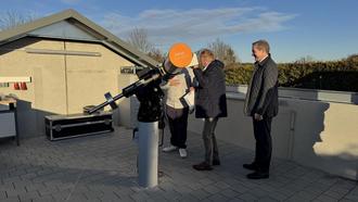 Josef Bauer, der stellvertretende Landrat, und Oberbürgermeister Markus Ochsenkühn warfen einen Blick durch das neue Teleskop.