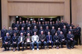 Stadt Neumarkt. Landrat Willibald Gailler, Neumarkts Oberbürgermeister Thomas Thumann, der Feuerwehrreferent im Stadtrat Reinhard Brock, Kreisbrandrat Jürgen Kohl und Stadtbrandinspektor Christian Kürzinger haben 57 Feuerwehrkräfte aus dem Stadtgebiet Neumarkt zu ihrem Jubiläum geehrt. Die Urkunde von Innenminister Herrmann überreichte dabei Landrat Gailler, OB Thumann steuerte jeweils einen Gutschein der Stadt bei. Alle zusammen gratulierten den Jubilaren und dankten ihnen für den großartigen Dienst an der Allgemeinheit. Oberbürgermeister Thumann, der zudem 1. Vorsitzender der Freiwilligen Feuerwehr Neumarkt ist, lobte die Einsatzbereitschaft der Feuerwehrkräfte, auf die man sich immer und zu jeder Tages- und Nachtzeit verlassen kann. „Das ist bürgerschaftliches Engagement in bester Ausprägung und das ist auch soziales Denken und Verhalten, was wir in unseren Feuerwehren bei den freiwilligen Kräften vorfinden“, so das Stadtoberhaupt. Neumarkts Oberbürgermeister Thumann erläuterte in dem Zusammenhang auch, dass die 57 Jubilare insgesamt eine Gesamtdienstzeit von 1.740 Jahren hinter sich haben. Das mache die Dimension des großartigen Einsatzes der Menschen in den freiwilligen Feuerwehren deutlich. Für Landrat Gailler sind die Feuerwehrkräfte unverzichtbar, um den Menschen ein Sicherheitsgefühl geben zu können. Er sei stolz auf das, was die rund 7.500 Aktiven in den 153 Wehren im Landkreis dabei leisten. Die Stadt Neumarkt lobte er, denn sie nehme ihre Aufgaben für die Feuerwehren sehr ernst, wie jetzt auch der Neubau der Feuerwache zeige. Kreisbrandrat Kohl würdigte den Einsatz der Männer und Frauen in den Wehren, die ein wichtiges Element seien, um gerade in einem Flächenlandkreis wie Neumarkt die Sicherheit aufrechterhalten zu können. Eine besondere Ehrung erhielt Martin Haberler von der Feuerwehr Pölling. Der Ehrenvorsitzende wurde für seine großen Verdienste mit der Bayerischen Feuerwehrmedaille ausgezeichnet, die, wie Landrat Gailler erläuterte, nur selten vergeben werde. Haberler ist seit 1946 bei der Feuerwehr, er war von 1975 bis 1997 Vorstand der FFW Pölling. Noch heute nehme er am Leben der Feuerwehr teil.