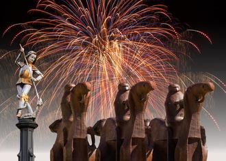 „Prickelnde“ Silvesterführung - Brunnenspaziergang: Dienstag 31.12.2024 um 13:30 Uhr, Treffpunkt ab 13:15 Uhr am Bronzerelief vorm Rathaus, Kosten: 6 € pro Person. Noch einmal geht es um Neumarkts Brunnen. In der Pfalzgrafenstadt gab es im innerstädtischen und stadtnahen Bereich acht Brunnen, davon befanden sich drei auf dem Marktplatz. Die Führung informiert über die Konzeption des Brunnen- und Skulpturenprogramms, zum Schluss wird mit „prickelndem Wasser“ auf das neue Jahr angestoßen.