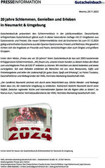 Unter dem Motto „Preise wie vor 20 Jahren“ feiert Gutscheinbuch.de das seit 2003 bestehende Erfolgsprodukt Schlemmerblock. „Wir freuen uns, unseren treuen Kunden zu diesem Anlass den Block zum unschlagbaren Preis ab 9,92 €* anbieten zu können. Wir möchten uns damit bedanken und etwas zurückgeben. Seit zwei Dekaden entdecken die Menschen mit uns neue Restaurants, Cafés und Freizeitangebote und teilen die Leidenschaft für gutes Essen, Spaß und Erholung“, so Fotios Toulatos, Geschäftsführer und Mitbegründer der VMG, Vertriebs-Marketing-Gesellschaft mbh.