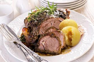 Juradistl-Lammschäuferl mit Knödel.