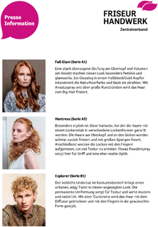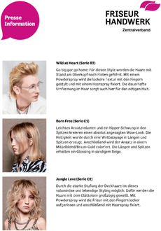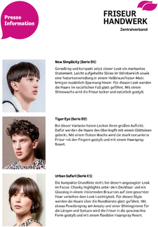 (Friseur Handwerk Zentralverband). Es gibt so viel zu entdecken. Ganz egal ob auf einer langen Reise, einem Kurztrip oder einfach im Alltag. Im Frühjahr/Sommer 2025 gehen wir mit HYPER SAFARI auf eine Entdeckungsreise durchs Leben. Die neue Trendkollektion des Zentralverbandes setzt für die neue Saison auf Textur. Die Haarschnitte leben von Stufungen und Struktur. Locker, lässig und unkompliziert wirken die Looks, unangestrengt und leicht. Die Farben sind allesamt aus der Palette der Natur und unterstreichen durch gezielt eingesetzte Farbtechniken die Texturen.