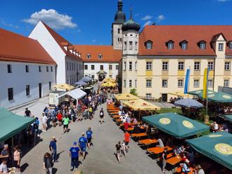 Das sonnige Wetter lockte viele Besucher ins Kloster, wo frisch gezapftes Maibockbier, Ochs am Spies und gegrillte Leckereien aus der Klosterküche auf sie warteten. Musikalisch untermalt wurde das Maibockfest von regionalen Musikgruppen - den Biberblechern und der Blaskapelle Breitenbrunn. Auf dem Kirchvorplatz verkauften sich hunderte Bio-Jungpflanzen aus der Klostergärtnerei fast von selbst und nachmittags liefen viele strahlende Kinder, mit bunt geschminkten Gesichtern durch den Klosterinnenhof. Ein Highlight bei den jüngsten Besuchern war auch die Hüpfburg.