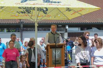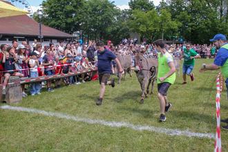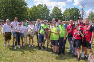Stadt Neumarkt. Sehr gut besucht war das Eselrennen beim diesjährigen Frühlingsfest. Oberbürgermeister Markus Ochsenkühn konnte mehrere tausend Zuschauer hinter der Kleinen Jurahalle begrüßen. Die Moderation der Veranstaltung übernahm Hauptamtsleiter Thomas Thumann in Vertretung von Johann Paulus. Zu Beginn stellte er die 15 teilnehmenden Gruppen vor, die in vier Vorrunden um den Einzug ins Finale kämpften, das die jeweiligen Vorrundensieger erreichten. Die Rennen waren wie immer abwechslungsreich und boten viele spannende Momente. Sieger wurde das Notfallzentrum des Klinikums Neumarkt vor den Ringern des ASV Neumarkt und den Oldtimerfreunden Batzhausen. Die Esel werden dabei je Mannschaft abwechselnd von vier Teilnehmern in Form eines Staffellaufes geführt, so dass jede Mannschaft insgesamt vier Runden im aufgebauten Parcours absolvieren muss. Die Übergabe der Esel erfolgt jeweils an der Start-Ziel-Linie. Die Esel stammen zum einen vom Eselstall Beyer und zum anderen von Haubner‘s Ranch.