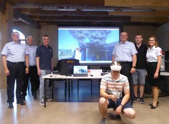 Feuerwehren des Landkreises Neumarkt i.d.OPf./Gottschalk. Bei vielfältigen Einsatzszenarien der Feuerwehr werden die ersteintreffenden Einheitsführer oft vor besondere Herausforderungen gestellt. So gilt es die vorgefundene Einsatzlage rasch umfassend zu erkunden, Einsatzbefehle an die Mannschaft zu erteilen und Lagemeldungen an die Leitstelle abzugeben. Um den ehrenamtlichen Führungskräften die Möglichkeit zu geben, realistische Einsatzszenarien in einer kontrollierten Umgebung zu beüben und eine umfassende Lageerkundung, Gefahrenanalyse, Einsatztaktik und Befehlsgebung zu trainieren, hat der Kreisfeuerwehrverband mit Unterstützung der Versicherungskammer Bayern ein System zur Feuerwehreinsatzsimulation, genannt FwESI, beschafft. Aus- und Fortbildungen an klassischen Planspielen waren schon immer Bestandteil der Feuerwehrausbildung. Mit dem virtuellen System werden diese nun auf ein neues Level gehoben. Während klassische Planspiele nur eine "Draufsicht" auf die Lage ermöglichen, finden die virtuellen Übungen immersiv statt - die Teilnehmer befinden sich also virtuell in der Lage und können dort interagieren und sich fortbewegen. So können beispielsweise Zugänge zu Gebäuden erkundet, Beteiligte befragt oder eine Rauchausbreitung beurteilt werden. Das System besteht aus einem Laptop mit der entsprechenden Software sowie einer VR-Brille und Controllern zur Steuerung. Die Ausbilder können auch aktiv in die Simulation eingreifen und so die Lage an Entscheidungen der Teilnehmer anpassen. Künftige Lehrgänge am Simulationssystem werden eine Kombination aus theoretischem Unterricht und praktischen Übungen am System umfassen. Kreisbrandrat Jürgen Kohl freute sich, das neue System bald in Dienst stellen zu können. Die hierfür nötigen Aufwendungen des Kreisfeuerwehrverbandes in Höhe von rund 7.500 € seinen in die Ausbildung der Ehrenamtlichen hervorragend investiert. Er bedanke sich besonders bei der Versicherungskammer Bayern, vertreten durch Herr Florian Ramsl, welche die Investition mit einer Spende von 5.000 € unterstützt und so eine Anschaffung ermöglicht hat.