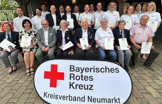 Für 25 Jahre: Brauwer Anabel, Wasserwacht Berching; Heerdegen Paul, Wasserwacht Neumarkt; Hofbauer Josef, Wasserwacht Berching; Kotzerke Branko, Bereitschaft Mühlhausen; Lutz Patrick, Wasserwacht Berg; Matschiner Kerstin, Bereitschaft Mühlhausen/Jugendrotkreuz Mühlhausen; Mäutner Andreas, Bereitschaft Mühlhausen; Niebler Simon, Wasserwacht Berg; Pirkl Sebastian, Wasserwacht Berg; Polster Rosina, Bereitschaft Berg; Schwarz Martin, Bereitschaft Mühlhausen; Schwarz Thomas, Bereitschaft Mühlhausen; Stork Maximilian, Wasserwacht Berching; Sturm Sebastian, Wasserwacht Berg; Uschold Maria Cäcilia, Bereitschaft Mühlhausen/Jugendrotkreuz Mühlhausen; Zang Monika, Bereitschaft Mühlhausen/ Jugendrotkreuz Mühlhausen.