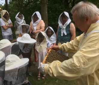 Stadt Neumarkt. Mit dem Mehrgenerationenhaus Neumarkt beim Imkerverein Neumarkt Zwölf Kinder und acht Erwachsene begaben sich am 26. Juni im Rahmen der Reihe „Kinder auf Entdeckungsreise“ des Mehrgenerationenhauses Neumarkt auf eine faszinierende Expedition in die Welt der Bienen. Treffpunkt war die Bienenwiese im LGS-Park, wo die kleinen und großen Teilnehmerinnen und Teilnehmer die „Wohnstätten“ der fleißigen Insekten bestaunen konnten. Der Bienenfachwart Edgar Häber und der erste Vorsitzende des Neumarkter Imkervereins, Harald Hermann, erklärten zunächst die wichtigsten Verhaltensregeln im Umgang mit Bienen. Ausgestattet mit Imkerhüten erfuhren die Kinder, dass der Stockmeißel das zentrale Werkzeug des Imkers ist - mit ihm wird der Bienenstock geöffnet. Während der Veranstaltung teilten die beiden Experten spannende Einblicke in das Leben im Bienenstaat. Besonderes Augenmerk galt der Bienenkönigin: Sie wird lebenslang mit Gelée Royale gefüttert und legt täglich rund 2.500 Eier. Die Teilnehmenden staunten über den stressigen Alltag der Königin und beobachteten das Bienenoberhaupt voller Faszination. Dank eines grünen Punkts auf ihrem Rücken war sie deutlich von den Arbeitsbienen zu unterscheiden. Besondere Vorsicht war geboten, als einigen mutigen Kindern eine männliche Biene - liebevoll „Willi“ genannt - auf die Hand gesetzt wurde. Die Imker achteten darauf, Drohnen und weibliche Bienen nicht zu verwechseln, da Drohnen im Gegensatz zu Arbeiterinnen keinen Stachel besitzen. Trotz leicht aufgewühlter Stimmung im Bienenvolk aufgrund des Wetters verlief die Veranstaltung reibungslos. Zum Abschluss besichtigten die Kinder die Arbeitsgeräte im Bienenhaus und lernten unter anderem die Funktion der Honigschleuder kennen. Wer wollte, konnte sogar ein Glas Honig als süße Erinnerung erwerben und mit nach Hause nehmen.