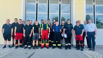 Unter aufmerksamem Blick der sechs Landkreisausbilder arbeiteten die Teilnehmer selbständig ihre unterschiedlichen Einsatzaufträge ab. Somit wurden nicht nur die Rettungstechniken, sondern auch die Einheitsführung trainiert. Die abschließende mündliche und praktische Prüfung absolvierten alle Teilnehmer mit Bravour, sodass die Ausbilder stolz allen Teilnehmern ihre Urkunden überreichen konnten. Auch Bürgermeister Christian Schmid, Kreisbrandinspektor Joachim Klein und Kreisbrandmeister Klaus Eichensser gratulierten den Teilnehmern und bedankten sich für deren ehrenamtliches Engagement in der Ausbildung.