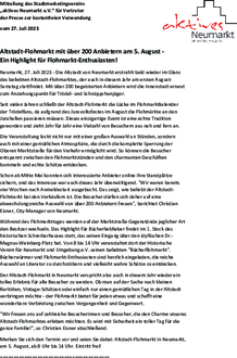 Die Altstadt von Neumarkt erstrahlt bald wieder im Glanz des beliebten Altstadt-Flohmarktes, der auch in diesem Jahr am ersten August-Samstag stattfindet. Mit über 200 begeisterten Anbietern wird die Innenstadt erneut zum Anziehungspunkt für Trödel- und Schnäppchenjäger. Seit vielen Jahren schließt der Altstadt-Flohmarkt die Lücke im Flohmarktkalender der Trödelfans, da aufgrund des Jura-Volksfestes im August die Flohmärkte an den Jura-Hallen pausieren müssen. Dieses einzigartige Event ist eine echte Tradition geworden und zieht Jahr für Jahr eine Vielzahl von Besuchern aus nah und fern an. Die Veranstaltung lockt nicht nur mit einer großen Auswahl an Ständen, sondern auch mit einer gemütlichen Atmosphäre, die durch die komplette Sperrung der Oberen Marktstraße für den Verkehr ermöglicht wird. So können die Besucher entspannt zwischen den Flohmarktständen und den charmanten Geschäften bummeln und echte Schätze entdecken. Schon ab Mitte Mai konnten sich interessierte Anbieter online ihre Standplätze sichern, und das Interesse war auch dieses Jahr überwältigend. "Wir waren bereits vier Wochen nach Anmeldestart ausgebucht. Das zeigt, wie beliebt der Altstadt-Flohmarkt bei den Verkäufern ist. Die Besucher dürfen sich daher auf eine abwechslungsreiche Auswahl von über 200 Anbietern freuen", berichtet Christian Eisner, City-Manager von Neumarkt. Während des Flohmarkttages werden auf der Marktstraße Gegenstände jeglicher Art den Besitzer wechseln. Das Highlight für Bücherliebhaber findet im 1. Stock des historischen Schreiberhauses statt, das seinen Eingang über den idyllischen Dr.-Magnus-Weinberg-Platz hat. Von 8 bis 14 Uhr veranstaltet dort der Historische Verein für Neumarkt und Umgebung e.V. seinen beliebten "Bücherflohmarkt". Bücherwürmer und Flohmarkt-Enthusiasten sind herzlich eingeladen, die reiche Auswahl an Literatur zu durchstöbern und vielleicht wahre Schätze zu entdecken. Der Altstadt-Flohmarkt in Neumarkt verspricht also auch in diesem Jahr wieder ein tolles Erlebnis für alle Besucher zu werden. Ob man auf der Suche nach kleinen Raritäten, Vintage-Schätzen oder einfach nur einen gemütlichen Tag in der Altstadt verbringen möchte - der Flohmarkt bietet für jeden etwas und schafft eine wunderbare Verbindung zwischen Vergangenheit und Gegenwart. "Wir freuen uns auf zahlreiche Besucherinnen und Besucher, die den Charme unseres Altstadt-Flohmarktes erleben möchten. Es wird mit Sicherheit ein toller Tag für die ganze Familie!", so Christian Eisner abschließend. Merken Sie sich den Termin vor und seien Sie dabei: Altstadt-Flohmarkt in Neumarkt, am 5. August, von 8.00 Uhr bis 14.00 Uhr. Eintritt frei!