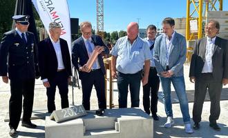 Stadt Neumarkt. Oberbürgermeister Markus Ochsenkühn hat zusammen mit Vertretern der Politik, der für den Bau Verantwortlichen und der Feuerwehr den Grundstein für den Neubau der Neumarkter Hauptfeuerwache gelegt. In seiner Ansprache betonte er, wie wichtig die Arbeit der Feuerwehren ist. Gerade im Hinblick auf die Starkregenereignisse der letzten Wochen nutzte er die Gelegenheit, um sich noch einmal bei allen Einsatzkräften zu bedanken. Der Neubau am Kurt-Romstöck-Ring wurde notwendig, da die alte Feuerwache schon länger Defizite beim Platzangebot, aber auch im Bereich Heizung und Technikanlagen aufwies. Vieles ist dort nicht mehr darstellbar gewesen, so dass die Frage, ob man den Altbau saniert oder in einen Neubau investiert, für die Mehrheit des Stadtrates eine klare Entscheidung gewesen ist. Im Juli 2022 erfolgte in diesem Gremium dann die Projektfreigabe für die rund 27,2 Mio. Euro teure Maßnahme, wobei der Stadt vom Freistaat Bayern über die Regierung der Oberpfalz ein Zuschuss für diese Baumaßnahme von rund 4,2 Mio. Euro zugesagt worden ist. Insgesamt soll das neue Feuerwehrzentrum dann Platz für 20 Fahrzeuge bieten. Enthalten werden zwei Werkstattbereiche, eine Waschhalle und Umkleideräume für Frauen und Männer sowie Sanitärbereiche sein, es wird auch genug Platz für die Einsatzabwicklung geben. Dazu kommen Aufenthalts-, Ruhe-, Verwaltungs- und Schulungsräume sowie Lager und Technik. Das Gebäude wird mit seiner 100 Meter langen Front am Kurt-Romstöck-Ring in U-Form auf dem Gelände angeordnet sein, vom Hauptgebäude abgesetzt wird der Schlauchturm errichtet. Die Alarmausfahrt soll über die Freystädter Straße erfolgen und PV-Anlagen auf dem Dach und der Fassade sollen für eine nachhaltige Stromerzeugung sorgen. „Als Oberbürgermeister und Vorstand der Freiwilligen Feuerwehr Neumarkt bin ich froh, dass die Feuerwehr Neumarkt nun eine modernes und von der Ausstattung her bestens funktionierendes Zentrum erhält. Dies wird uns ermöglichen, den zukünftigen Anforderungen gerecht zu werden“, so das Stadtoberhaupt zum Schluss seiner Ansprache.