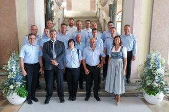 Feuerwehren des Landkreises Neumarkt i.d.OPf./Gottschalk. Am Abend des 18.07.2024 konnte eine Delegation von ehrenamtlichen Einsatzkräften von Feuerwehr und Technischem Hilfswerk aus dem Landkreis am Helferempfang des Bayerischen Landtags und der Bayerischen Staatsregierung auf Schloss Schleißheim teilnehmen. Stellvertretend für die hunderten Helfer, die im Neumarkt i.d.OPf. an den zwei Wochenenden im Juni bei den zahlreichen starkregen- und unwetterbedingten Einsätzen ehrenamtlich im Einsatz waren, war die Delegation aus dem Landkreis nach Schleißheim geladen worden. Landtagspräsidentin Ilse Aigner und Ministerpräsident Dr. Markus Söder begrüßten die Helfer persönlich beim Empfang und ließen es sich nicht nehmen, im Rahmen eines Gruppenfotos auch persönliche Dankesworte an die Ehrenamtlichen zu richten. Insgesamt waren rund 3.000 geladene Gäste zum Dank und als Anerkennung für ihren Einsatz bei den Fluteinsätzen in Bayern im Juni zu dem Empfang geladen. Auch Kreisbrandrat Jürgen Kohl bedankte sich nochmals bei allen Ehrenamtlichen für die an den zwei Wochenenden im Juni geleisteten Einsätze. So waren allein am ersten Juniwochenende etwa 190 Einsätze zu leisten, am letzten Juniwochenende dann mit 230 Einsätzen sogar nochmal mehr Alarmierungen abzuarbeiten. Damit konnte eine wohl einmalig hohes Einsatzaufkommen im Landkreis dank der Zusammenarbeit aller Hilfsorganisationen sowie dem Mitwirken der Gemeinden und der Nachbarschaftshilfe in vielen Ortschaften hervorragend bewältigt werden. Zu dem Helferempfang wurden unter anderem Einsatzkräfte der Freiwilligen Feuerwehren, des Technischen Hilfswerks, Mitarbeiterinnen und Mitarbeiter des BRK, der Bundeswehr und Landespolizei, private, nicht organisierte Helferinnen und Helfer sowie Gäste aus der Kommunal- und Landespolitik geladen.