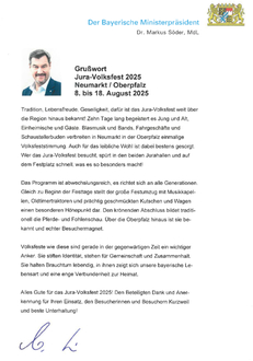 Alles Gute für das Jura-Volksfest 2025! Den Beteiligten Dank und Aner-