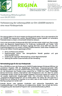 Die Lebensqualität vor Ort durch Initiative der Bürgerschaft stärken: Das ist das wesentliche Ziel von LEADER. Die sogenannten weichen Standort-Faktoren werden gestärkt, um vorhandene Potenziale besser zu nutzen und eventuelle Schwächen abbauen. Auch in der kommenden Förderperiode 2023-2027 wird dies wieder möglich sein. Dazu wurden durch das Bayerische Staatsministerium für Ernährung, Landwirtschaft und Forsten 1,874 Millionen Euro Fördermittel für die Region zugesagt. Bis Ende Januar 2027 kann das LAG-Entscheidungsgremium nun wieder innovative Projekte bewerten, soweit diese mindestens ein Ziel aus der Lokalen Entwicklungsstrategie erfüllen: