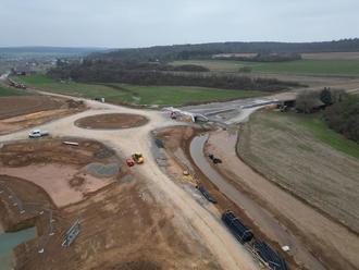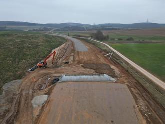 Dank der anfangs trockenen Witterung sind die Erdbauarbeiten sehr gut vorangekommen. Die Bauwerke, wie der Durchlass für den Ziegelbach und das Unterführungsbauwerk für den landwirtschaftlichen Verkehr, Richtung Erlenbach, wurden auch in 2023 soweit fertig gestellt. Die Unterführung in Verlängerung der Erlenbacher Straße wird in Kürze benutzbar sein. Die Fußgänger- und Raddurchführung Richtung Kreuzkapelle Rohrbach wird derzeit hinterfüllt, bis zur Benutzung wird noch etwas Zeit vergehen.