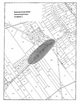 Flur 1; Flurstücke (vollständig Vom Bodendenkmal berührt) 278/2, 279/2, 280/2, 281/2, 282/2, 283/2, 284/4, 286/2, 290/2, 291/2, 336/2, 337/2 – Flur 5; Flurstücke (vollständig vom Bodendenkmal berührt) 121/2, 122/2, 123/2, 124/2, 125/2, 128/6, 140/2 – Flur 1; Flurstücke (teilweise vom Bodendenkmal berührt) 275, 276, 277, 278/1, 279/1, 280/1, 282/1, 283/1, 284/3, 286/1, 291/1, 326/2, 334, 335, 336/1, 337/1, 338/1, 338/2, 591, 679 – Flur 5; Flurstücke (teilweise vom Bodendenkmal berührt) 119/1, 119/2, 121/1, 122/1, 123/1, 124/1, 128/5, 139/1, 139/2, 140/1, 395