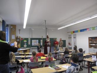 Mit großen Augen – und vielleicht auch ein wenig aufgeregt - verfolgten die Kinder der 1. und 2. Klassen den Besuch des Nikolauses. Heuer konnte er wieder persönlich vorbeikommen und den Kindern berichten, was er alles über sie erfahren hat. Unterstützt wurde er dabei von den irdischen Helfern des Elternbeirates der Schule, die auch die Päckchen gepackt haben. Natürlich hatten die Kinder auch etwas eingeübt, was sie dem Nikolaus gerne vorführten – als kleiner Dank für den Besuch und die liebevoll verpackten Geschenke.