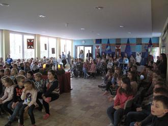 Das Theater Maskara war zu Gast mit dem Märchen: Der goldene Vogel. Ein turbulentes Märchen mit vielen verschiedenen Darstellern, vom Fuchs bis zur Prinzessin. Da könnte man meinen, es wäre ganz schön eng auf der Bühne! Doch in all die verschiedenen Rollen schlüpfte ein einziger Schauspieler, der es perfekt verstand durch Masken, Gesten und seine Stimme von einem Moment auf den anderen eine ganz andere Person zu verkörpern. Die Aufmerksamkeit der Kinder bewies, wie er es selbst nach turbulenteren Momenten verstand alle wieder zu fesseln.