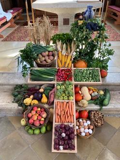 unser Mitteilungsblatt zieren in der Oktoberausgabe Bilder der wunderschönen Erntedankaltäre in unseren Kirchen. Die Pfarrgemeinderäte haben sich wieder viel Arbeit gemacht und die Altäre mit Früchten aus der Natur geschmückt. Allen Beteiligten sage ich dafür ein herzliches Vergelt´s Gott.