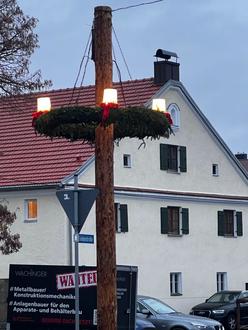 beim Maibaumummachen entstand die Idee, einen Teil stehen zu lassen und als Adventskranzhalter zu nutzen. Gesagt – getan. Nun haben wir einen beleuchteten Adventskranz in der Gemeinde. Vielen Dank an dieser Stelle an die Beteiligten.