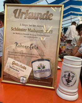 Neben dem Abstimmungswettbewerb prämiert die Jury der Maibaumfreunde Neuburg-Schrobenhausen mit Lechgebiet die schönsten 3 Maibäume. Der Rohrenfelser Maibaum wurde zum Zweitschönsten gekürt.