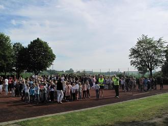 Am Freitag, den 10.05.2024 wurde an der Grund- und Mittelschule Ehekirchen ein Probealarm ausgelöst. Für die Übung ging man von einem Brand in einem Fachraum im Keller aus. Das Treppenhaus wurde gesperrt und manche Gruppen nutzten die Rettungswege durch die Fenster. Das Wetter spielte auch mit, sodass alle ohne feuchte Füße den Sammelplatz erreichen konnten. Die regelmäßige Übung verbessert die Routine und erfreut die Schülerinnen und Schüler, die sich so über ein paar zusätzliche Minuten in der Pause freuen konnten.