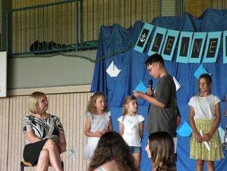 Vor dem Abschiedslied durch das Kollegium hielt auch Frau Link eine kleine Rückschau auf ihr Leben als Lehrerin, durchsetzt mit humorvollen Anekdoten. Am Ende bedankte sie sich bei allen Mitwirkenden für das außergewöhnlich schöne Fest.